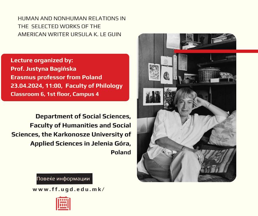Предавање на тема „Human and nonhuman relations in the selected works of the American writer Ursula K. le Guin“
